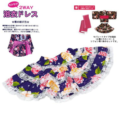 浴衣ドレス 子供服 女の子 帯付き バラ柄 セパレート 上下 3点セット☆全2色【あす楽対応_北海道】